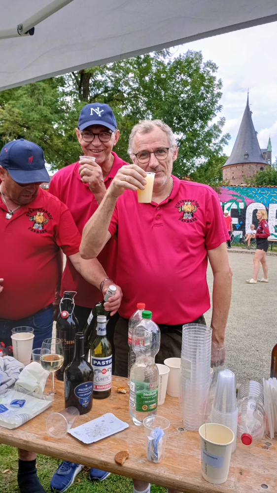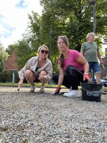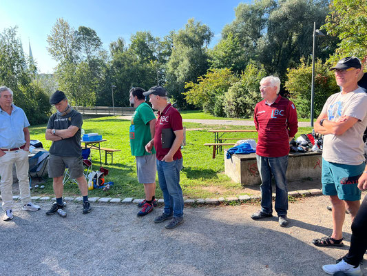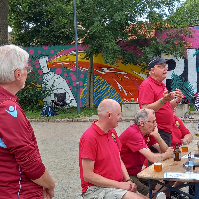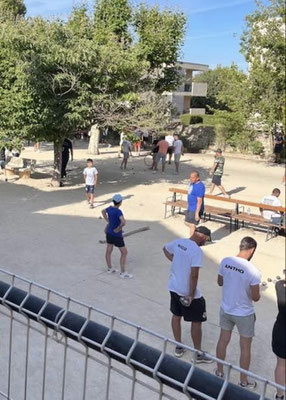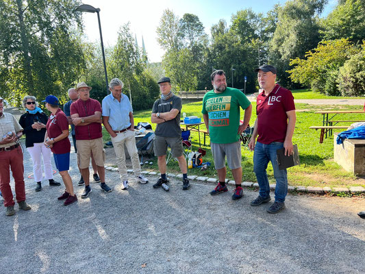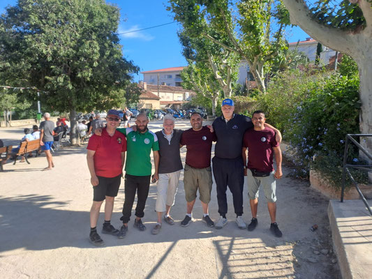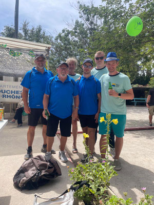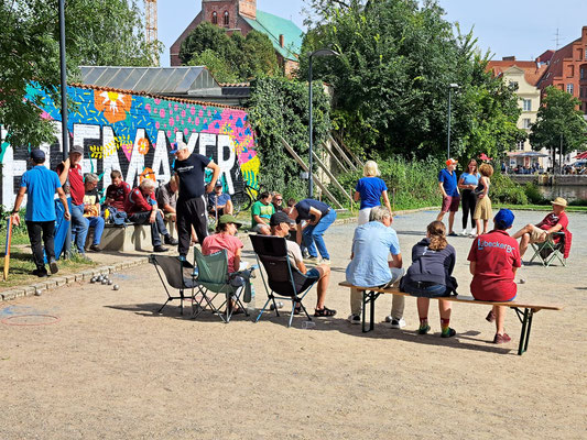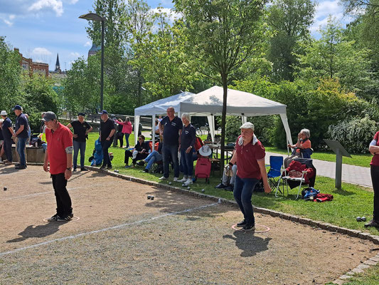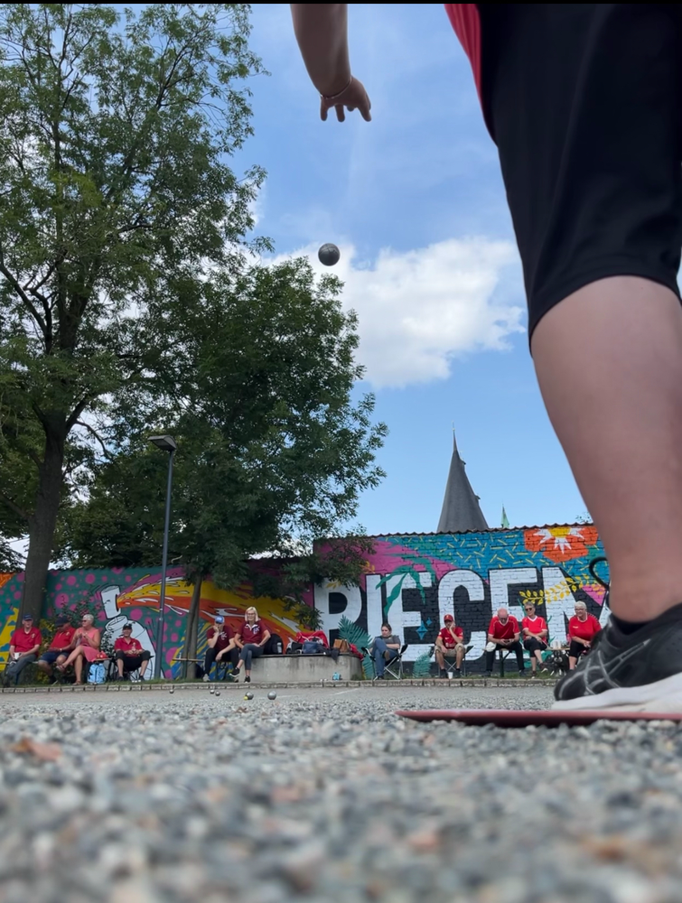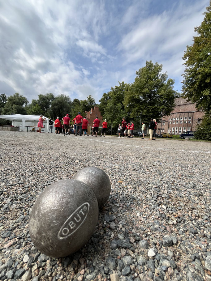 Die diesjährige Vereinsmeisterschaft stand unter einem glücklichen Stern: Noch einmal ein wunderschöner, warmer Sommertag, und 27 gut gelaunte Boulespieler:innen fanden sich am ersten Septembersonntag auf unserer Anlage ein. Mitglieder der dritten Mannschaft „Joyeux Boulistes“ (der Name ist Programm) sorgten für das passende Ambiente: Ein sauber abgezogener Platz, mit Schnüren abgespannte Bahnen, Tische und Bänke im Schatten sowie reichlich Bier, Cola, Kaffee, Saft, Wein und Mineralwasser für die durstigen Kehlen… Köstliche Beiträge von allen sorgten für ein leckeres Mittagsbuffet.