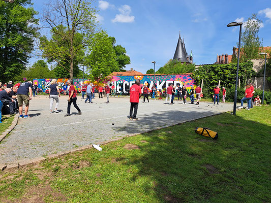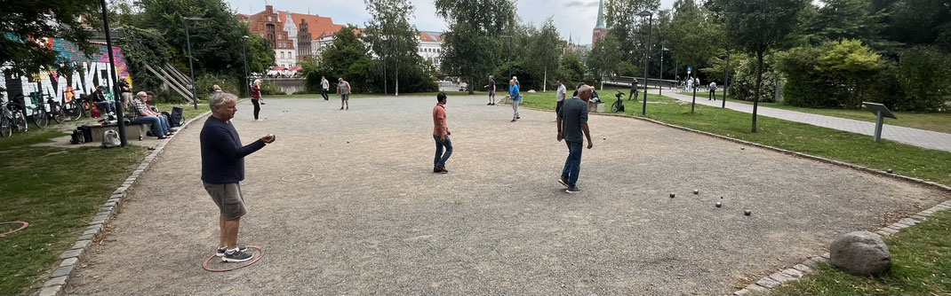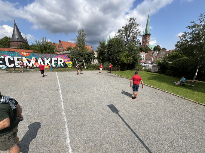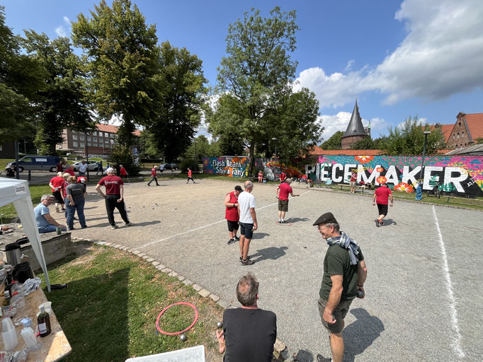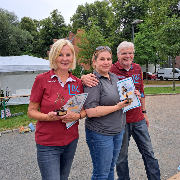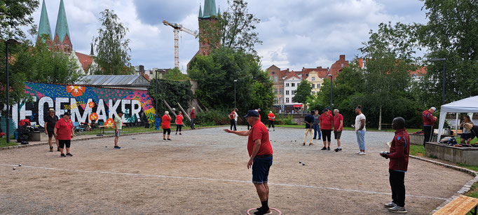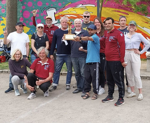 Der LBC hat zum 3. Mal in Folge die Stadtmeisterschaft errungen! Nachdem sich der TUS Lübeck aus der Organisation in diesem Jahr verabschiedet hat, sprang kurzfristig der Bouleclub Karlshof als Ausrichter ein. Da deren Platz ein solches großes Turnier nicht zulässt, wurden wir gefragt, ob das nicht auf unserem Platz stattfinden könnte. Natürlich sagten wir zu.