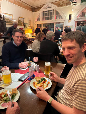 Am 4. Januar traf sich der treue Kern der ehemaligen dritten Mannschaft, die in den vergangenen drei Spielzeiten zu einem funktionierenden und harmonischen Team zusammengewachsen war, im „Café Affenbrot”, um sich von einander zu verabschieden und die Mannschaftskasse zu verjubeln. Zwar wurde bei diesem Abschiedsessen nicht gejubelt, aber viel gelacht und an so manche Begebenheit aus den gemeinsamen, erfolgreichen Zeiten (z. B. den souverän erspielten Klassenerhalt in der Saison 2023 !) erinnert.