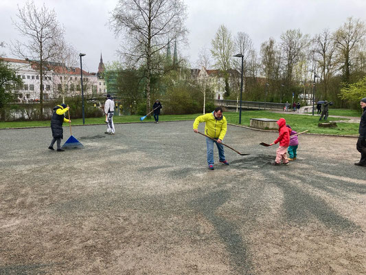 Ronja bat zum Frühjahrsputz am 3. April. Nach den vielen Monaten des Regens und der Kälte hatte unser Platz eine Grundreinigung dringend nötig, schließlich sollte zum Start der Sommerrangliste am 8. April alles im neuen Glanz erscheinen – und das haben alle fleißigen Helfer geschafft. Stundenlang brannten Hans und Stefan zwar kein Feuerwerk ab, aber das Unkraut hatte keine Chance. Zeitweilig hatte man das Gefühl, unser Platz bekommt eine Fußbodenheizung. Es wurde geharkt, gezupft und die gesamte Einfassung des Platzes gesäubert, größtenteils auf Knien.
