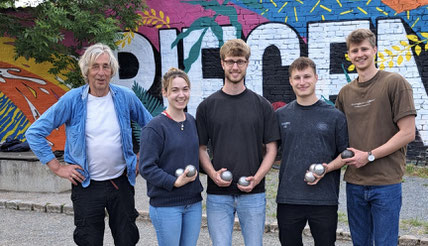 Nun schon zum dritten Mal konnte Stefan vier Studierende im Rahmen des Hochschulsports auf unserem Platz begrüßen, um ihnen den Boulesport näher zu bringen. Augenscheinlich mit Erfolg, wie an den strahlenden Gesichtern unschwer zu erkennen ist.