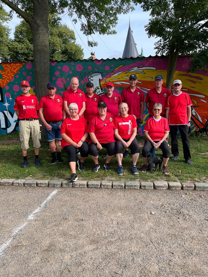 Oh, wie schön ist Dänemark! Na gut, noch nicht ganz Dänemark, sondern kurz davor in Tarup. Wir durften zum 2. Punktspiel zum Nordliga-Aufsteiger nach Tarup fahren. Es ist erstaunlich, was in ländlichen Strukturen alles möglich ist - ein toll angelegtes Boulodrome mit Unterstand, Küche, Toiletten und sogar einer kleinen Boulehalle. Wahnsinn! Dazu kam ein netter Ausrichter, der alles bestens vorbereitet hatte. Und dann stimmte auch der sportliche Teil für uns: Ein 4:1-Sieg gegen den Vorjahresmeister St. Pauli, ein überraschendes 5:0 gegen ABC 1 und schließlich ein hart umkämpftes 3:2 gegen die Heimmannschaft Tarup. Wir sind unangefochtener Tabellenführer mit 5 Siegen aus 5 Spielen und fuhren dementsprechend glücklich nach Hause. Ein besonderer Dank geht an Mark, der trotz einer angebrochenen Rippe spielte, an Oscar, der eigentlich an diesem Tag keine Zeit hatte, und an Sophie Oyu, die sich als unsere einzige Frau an diesem Tag durch alle Spiele kämpfen musste, da Eddi bereits in der Bretagne weilte. ——— Reinhard Link zur Nordliga